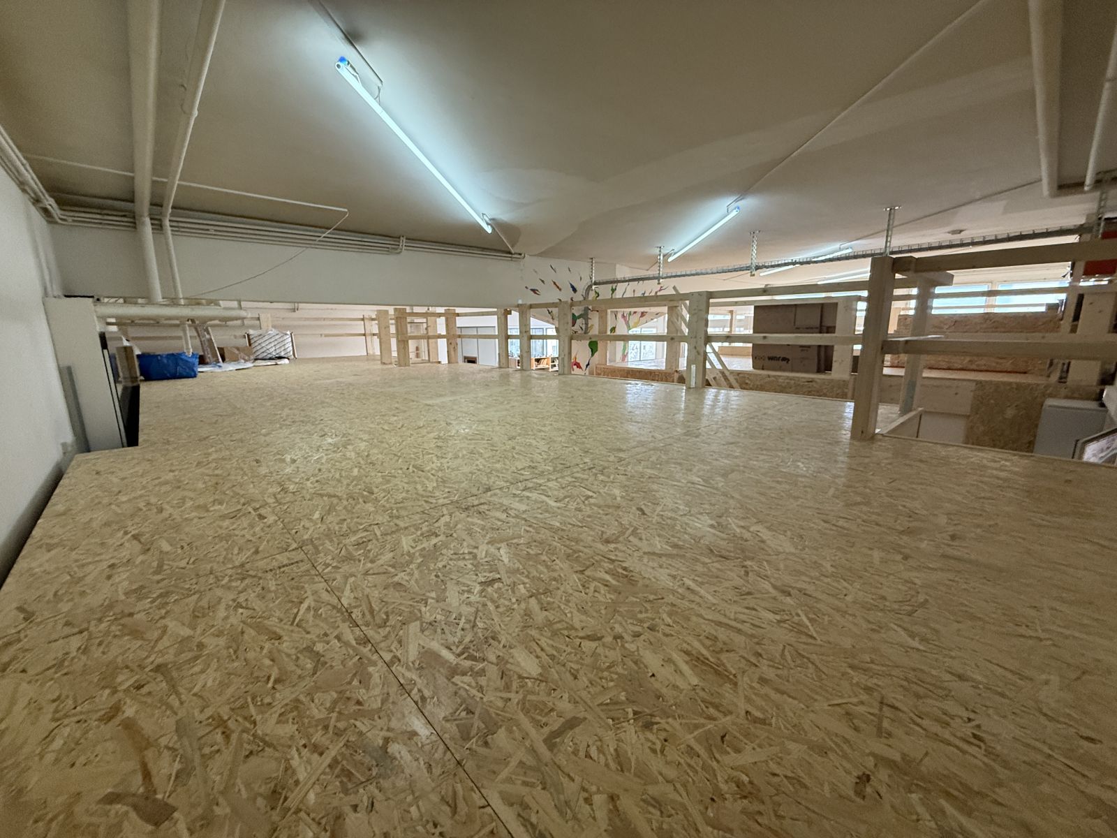 - La mezzanine permet une charge de 2 kN/m² (≈ 200 kg/m²). Cette mezzanine est pensée comme espace de stockage mais peut également être aménagée pour accueillir une activité.