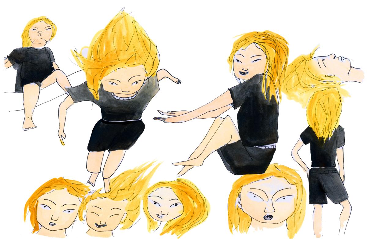 Il peut être utile de dessiner plusieurs expressions de visage et plusieurs positions du personnage. Lorsqu’il/elle est triste, fâché-e, amusé-e, etc… Certains personnages auront un air doux et attendri lorsqu’ils sont contents, d’autres auront un air souriants et fiers, il s’agit de trouver des expressions propres à chaque personnage.